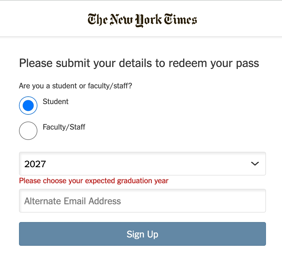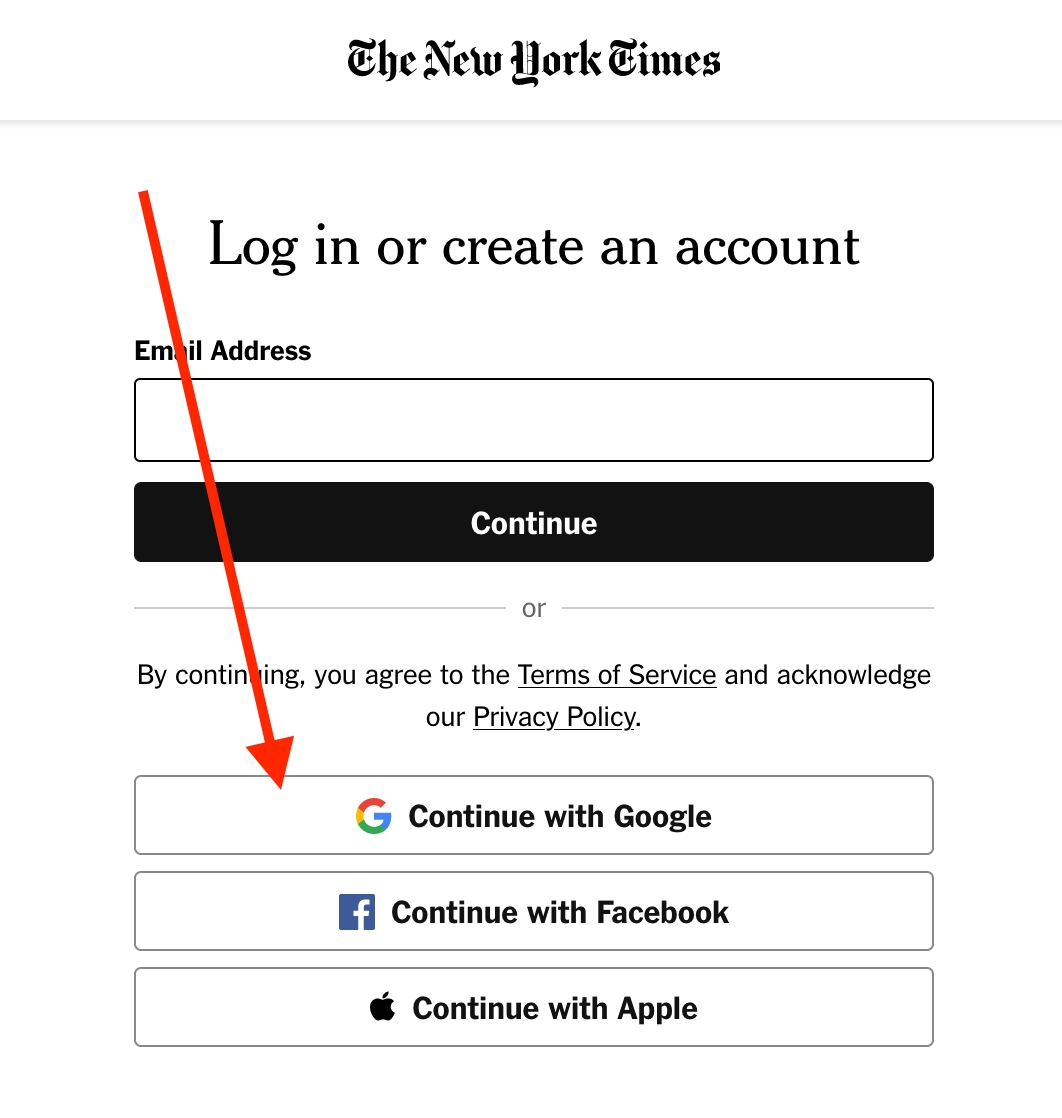 Done! You now have full access to the NYT. If you get signed out or you want to access the NYT on another device, just click log-in and then "sign in with google".