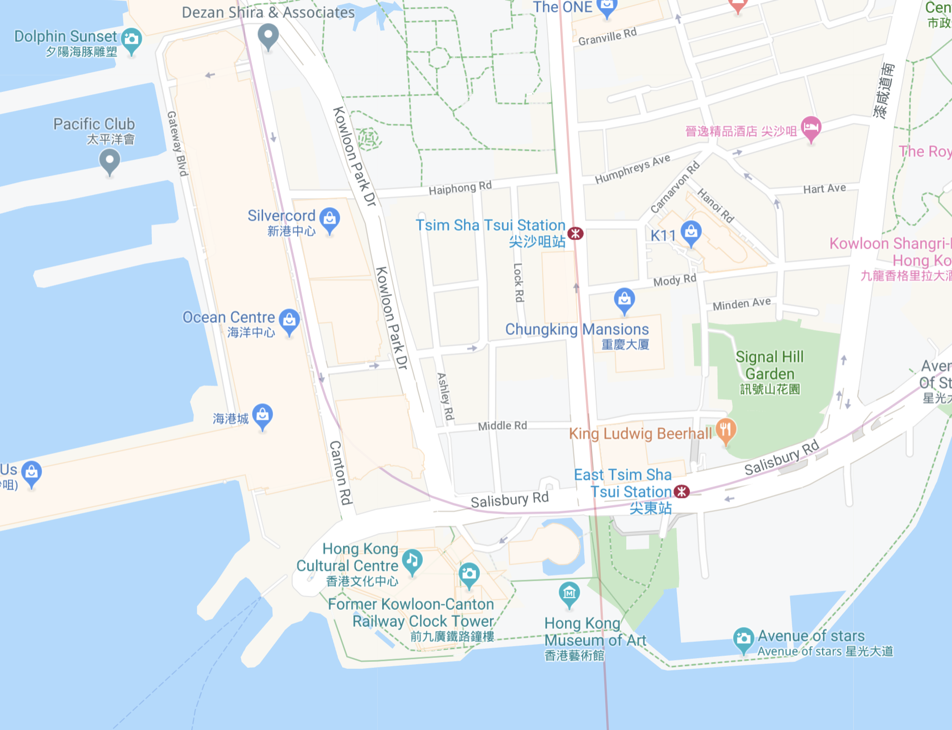 Map of Tsim Tsa Tsui, Hong Kong. Google Maps, 2019. www.google.com/maps/@22.2989636,114.1711692,15.91z. Accessed 10 Oct. 2021.